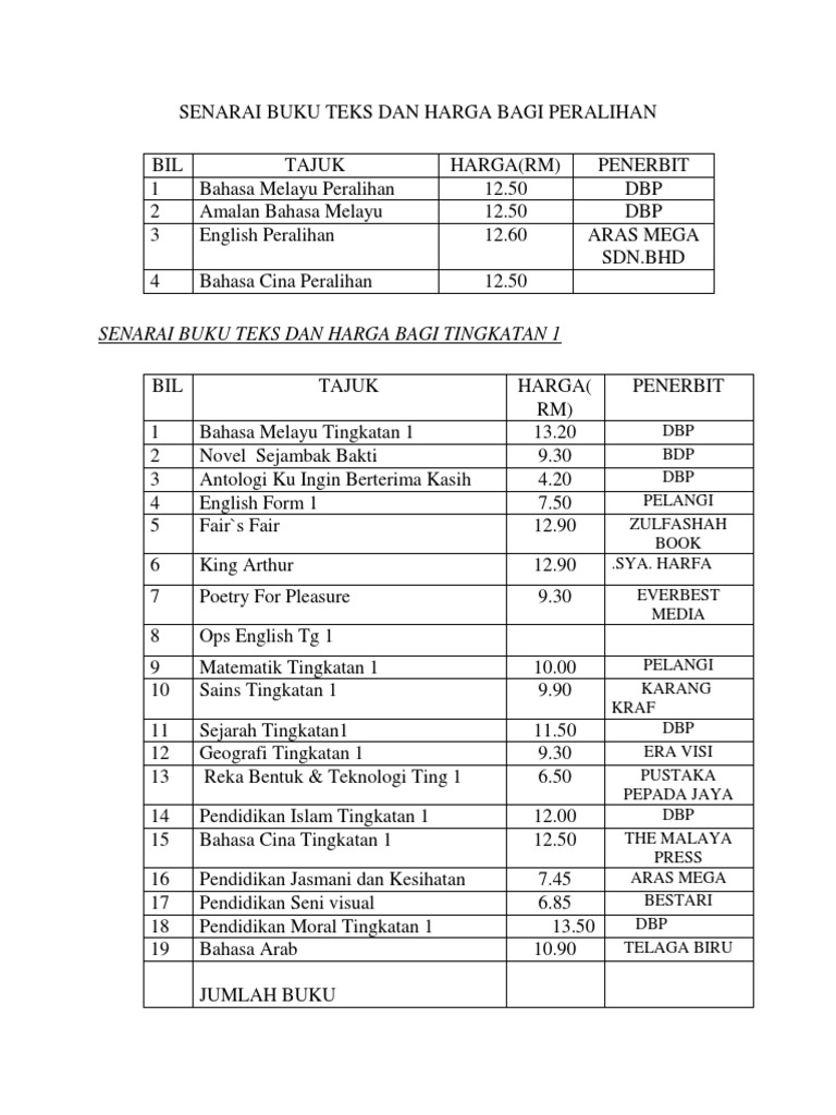 Senarai Buku Teks Tingkatan 1 2018 Leandroctx